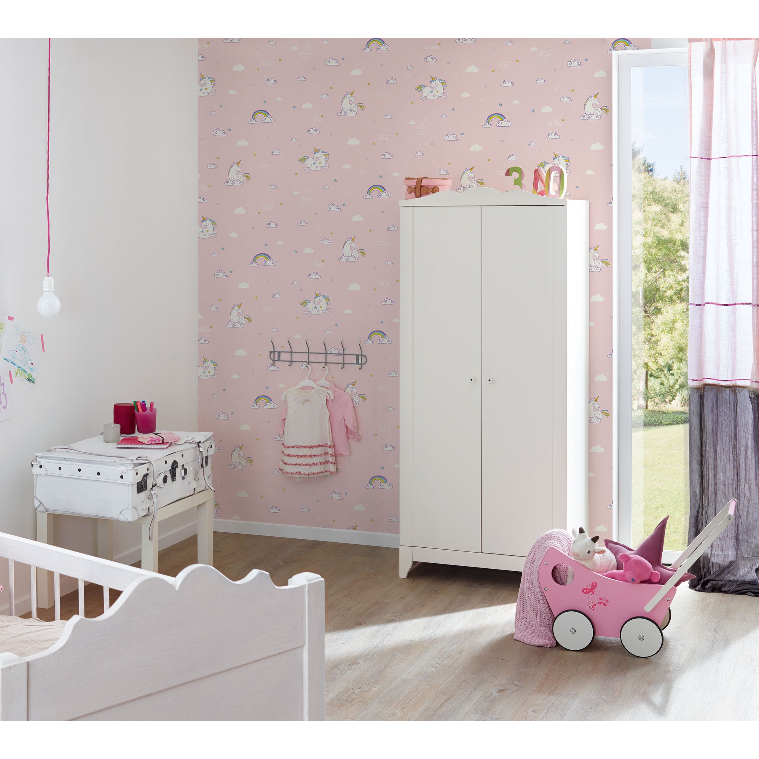 - Farbe der Tapete: Rosa