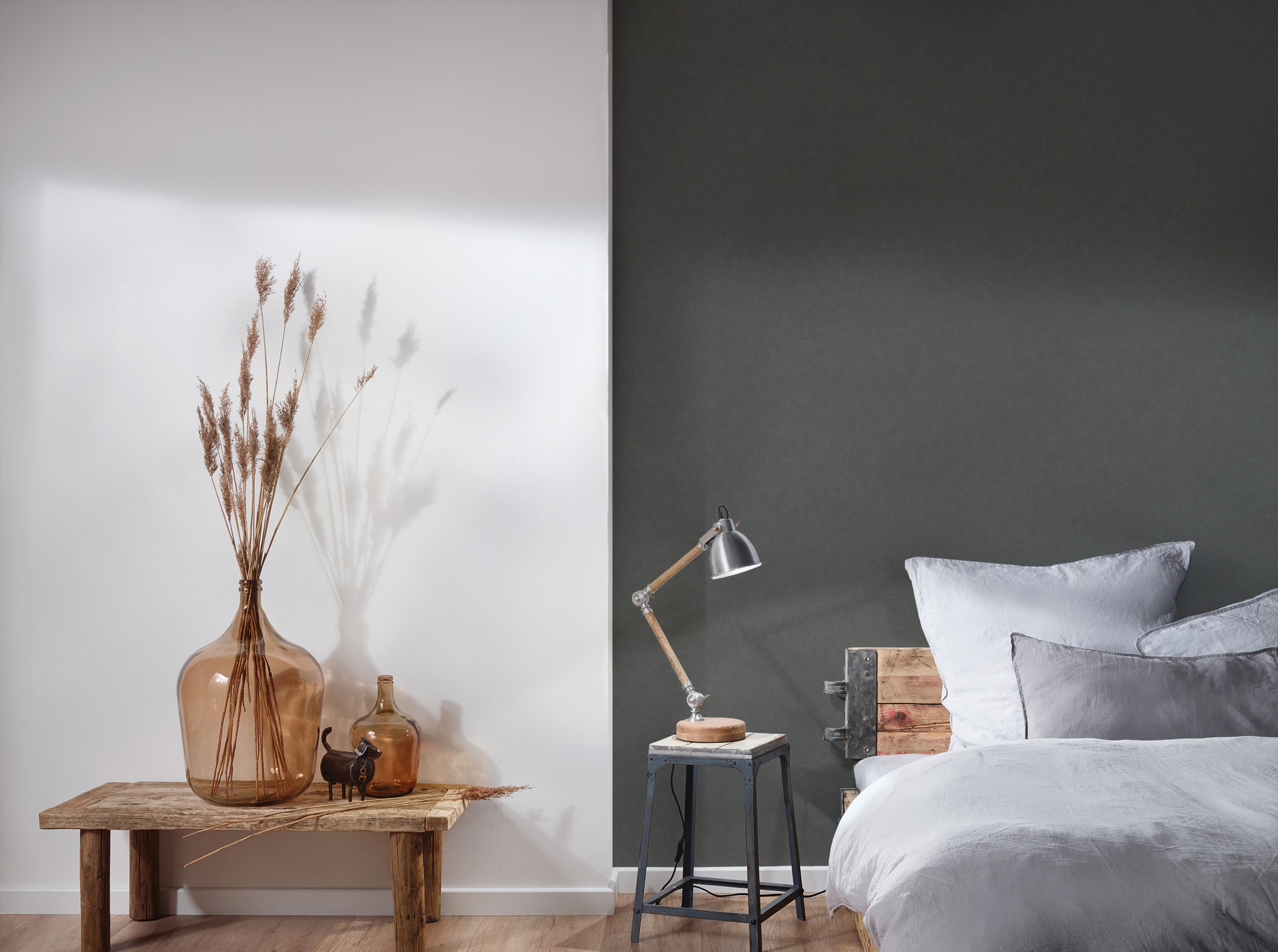 - Farbe der Tapete: Grau