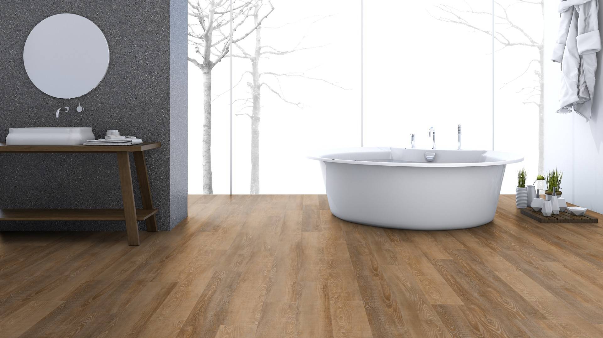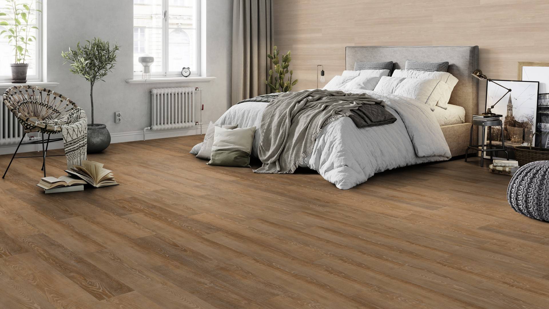 Der Bodenbelag inTerra Oak überzeugt durch seine perfekte Imitation natürlicher Holzböden. Die feine Maserung verleiht dem Boden eine authentische und hochwertige Ausstrahlung die an Böden aus Eicheerinnert. Dank der vielseitigen Farbgebung passt er zu jedem Einrichtungsstil und schafft eine harmonische Atmosphäre in deinem Zuhause.