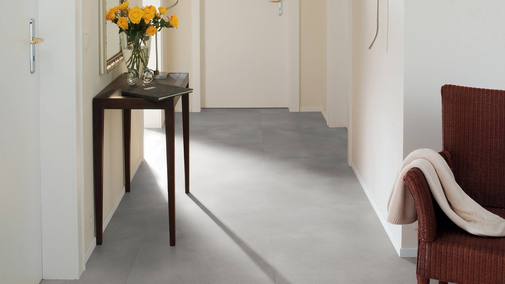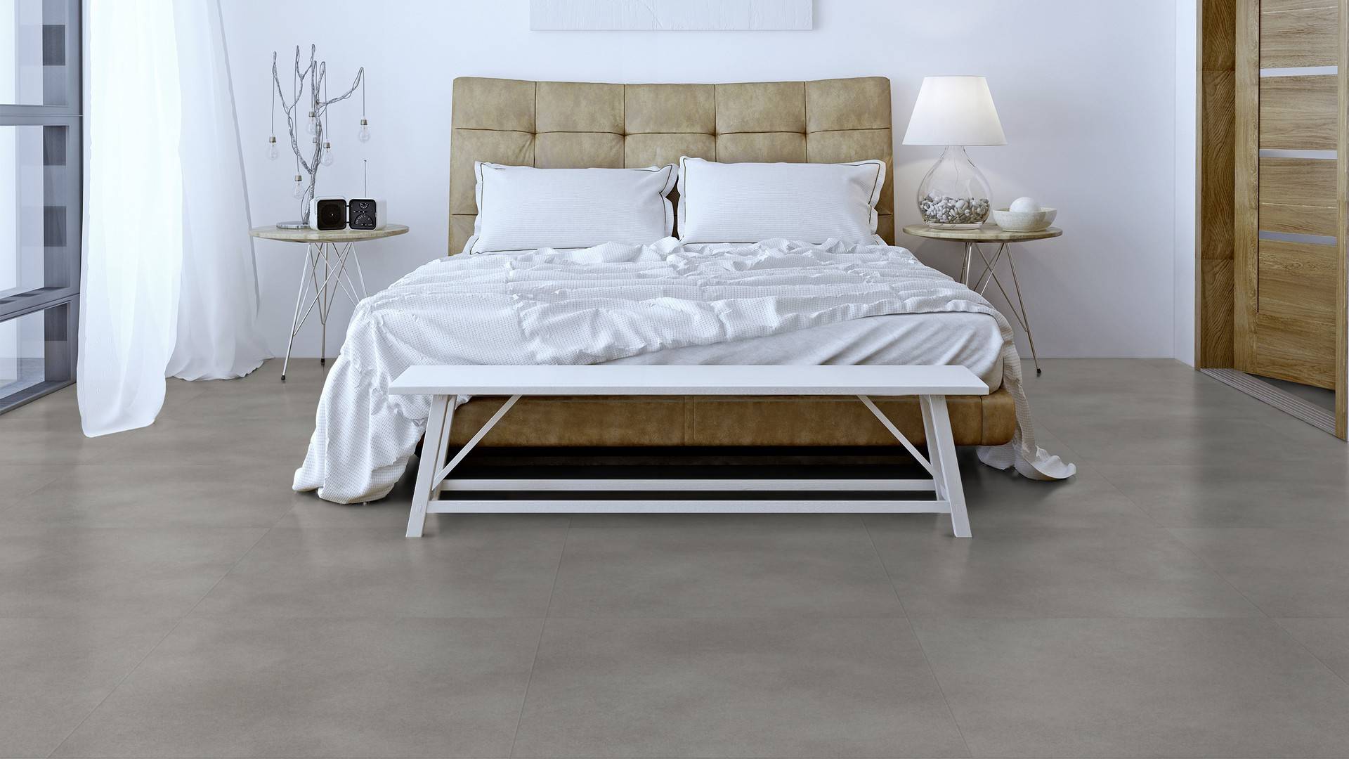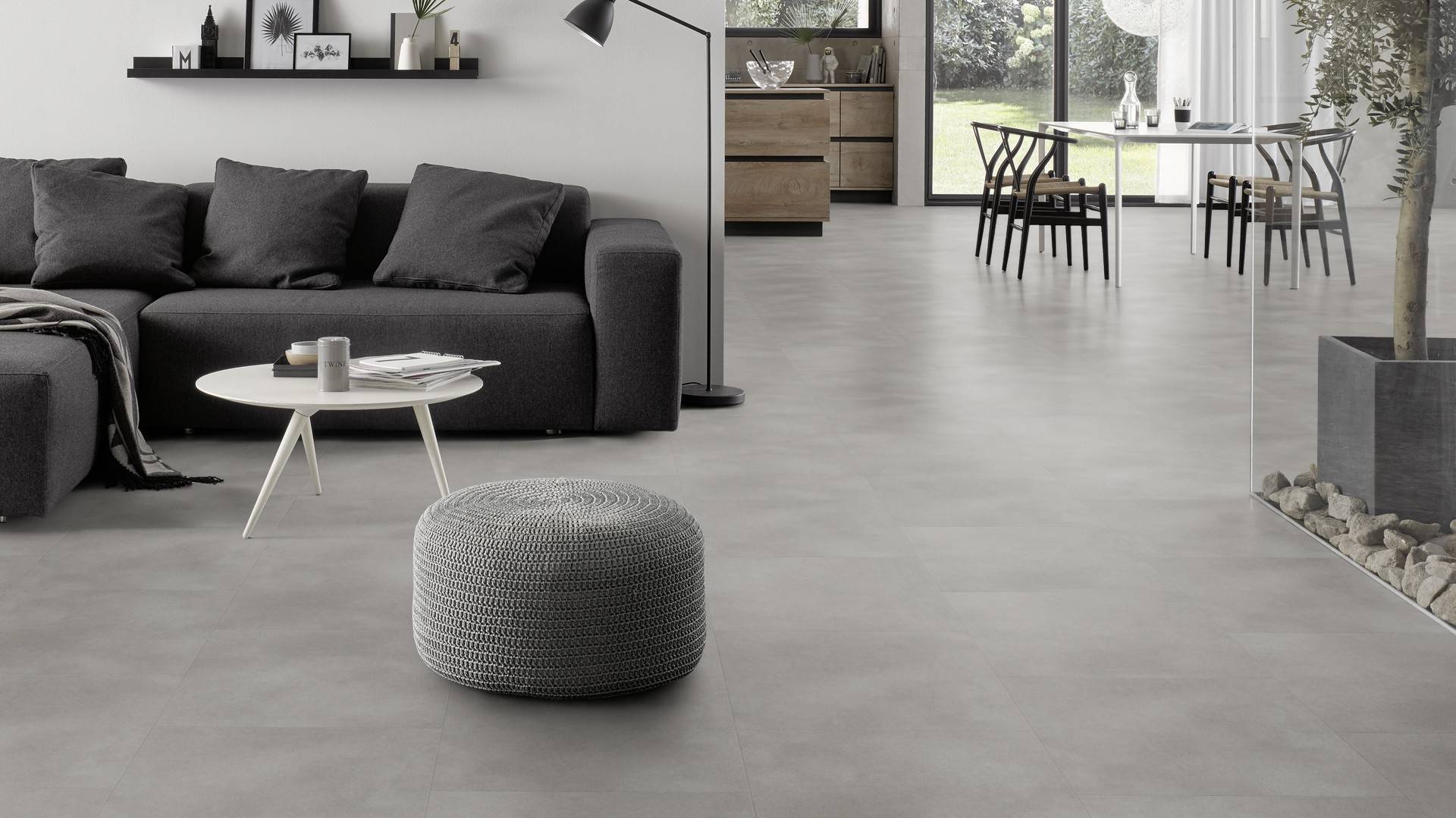 Der Bodenbelag inWarm Grey Concrete überzeugt durch seine perfekte Imitation natürlicher Holzböden. Die feine Maserung verleiht dem Boden eine authentische und hochwertige Ausstrahlung die an Böden aus Steinbödenerinnert. Dank der vielseitigen Farbgebung passt er zu jedem Einrichtungsstil und schafft eine harmonische Atmosphäre in deinem Zuhause.
