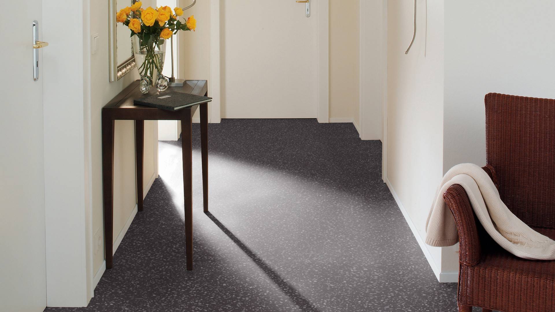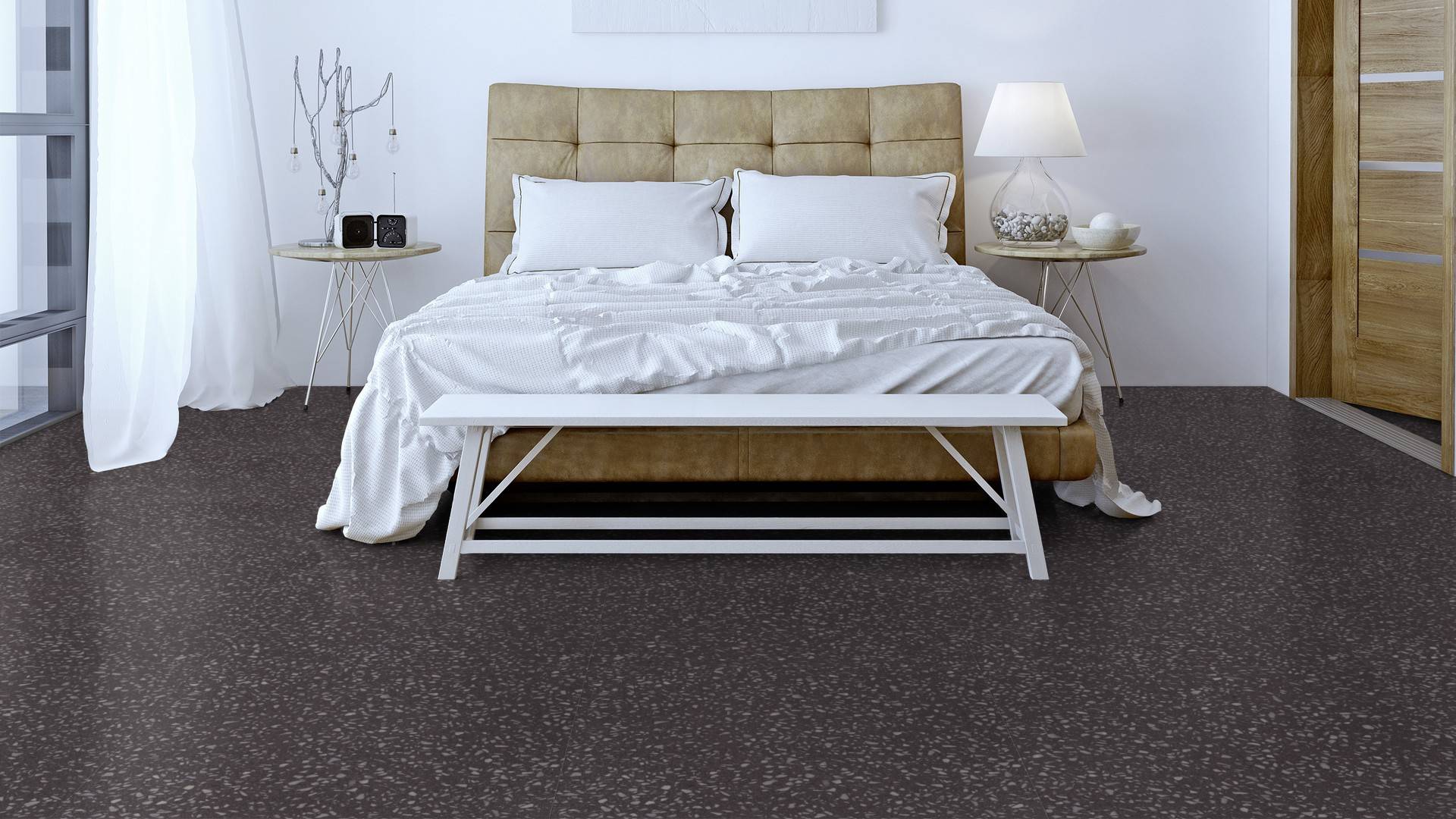 Der Bodenbelag inSloe Terrazzo überzeugt durch seine perfekte Imitation natürlicher Holzböden. Die feine Maserung verleiht dem Boden eine authentische und hochwertige Ausstrahlung die an Böden aus Terazzoerinnert. Dank der vielseitigen Farbgebung passt er zu jedem Einrichtungsstil und schafft eine harmonische Atmosphäre in deinem Zuhause.