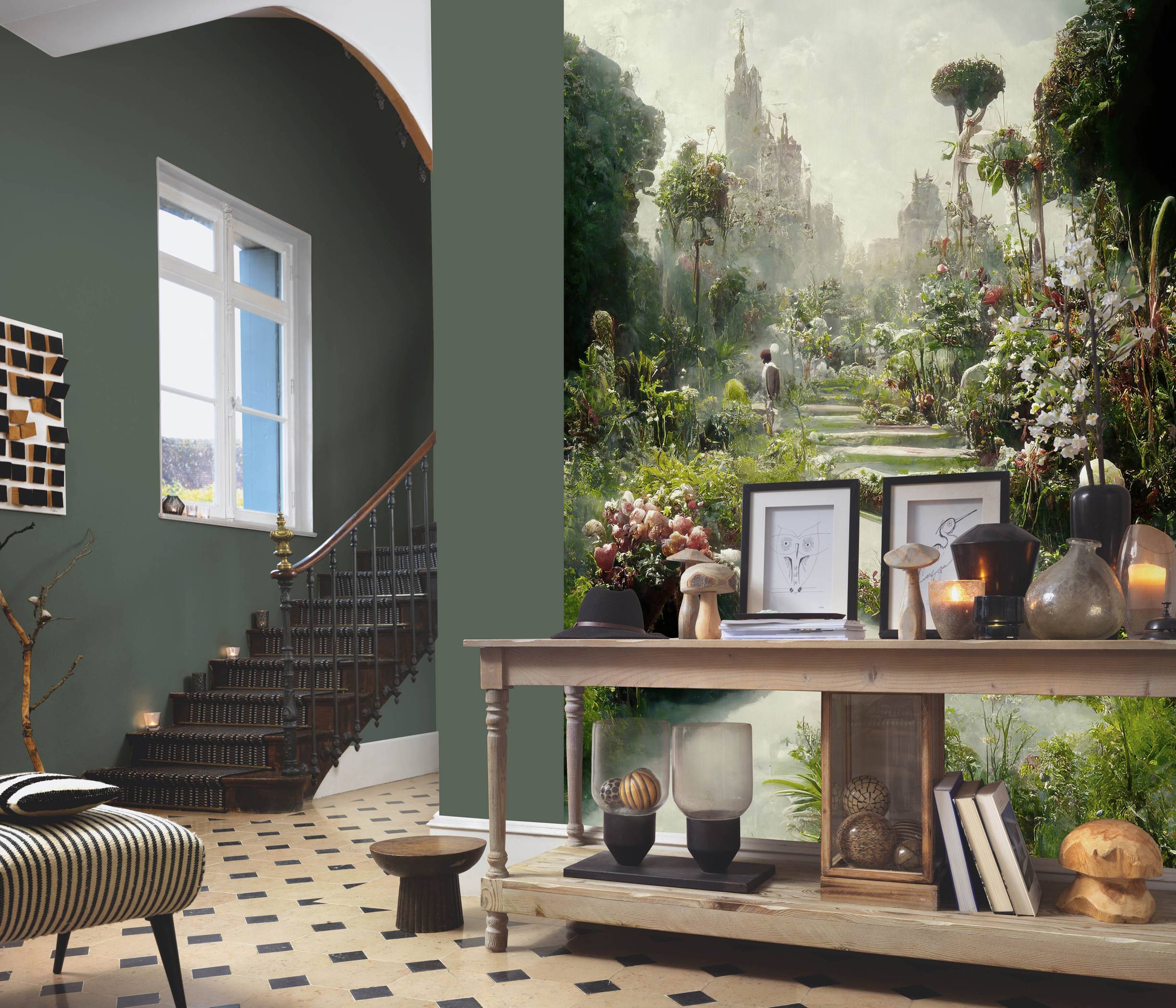 Tapeten mit Natur- und Landschaftsmotiven bringen die Schönheit der Außenwelt in Deine Räume und schaffen eine beruhigende, inspirierende Atmosphäre. Ob sanfte Bergpanoramen, dichte Wälder oder weite Wiesen - diese Designs erzeugen eine tiefe Verbundenheit zur Natur und lassen den Raum offener und weitläufiger wirken. Kombiniert mit Uni-Tapeten oder natürlichen Materialien entsteht eine harmonische Umgebung, die Ruhe und Wohlbefinden fördert.