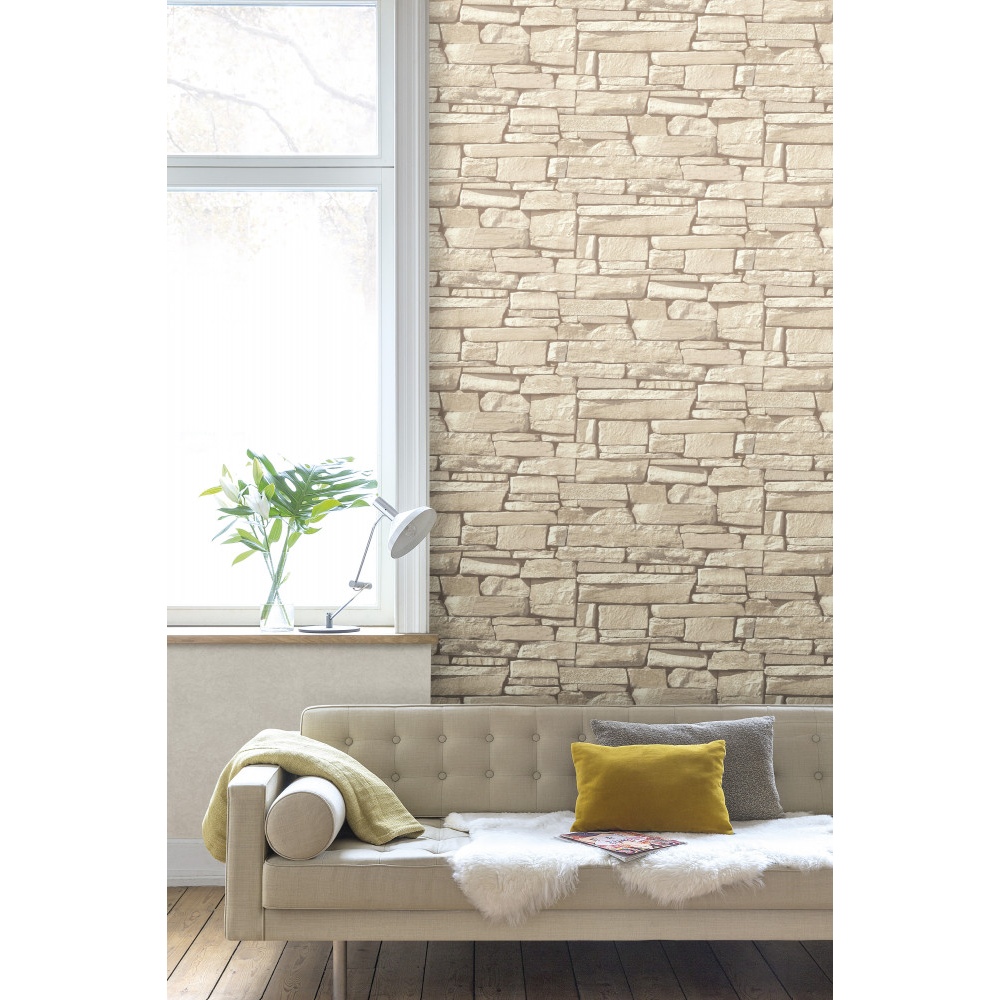 Grandeco | Nomad | 115403 | Vliestapete | Steinoptik | 10.05 x 0.53 m | Beige