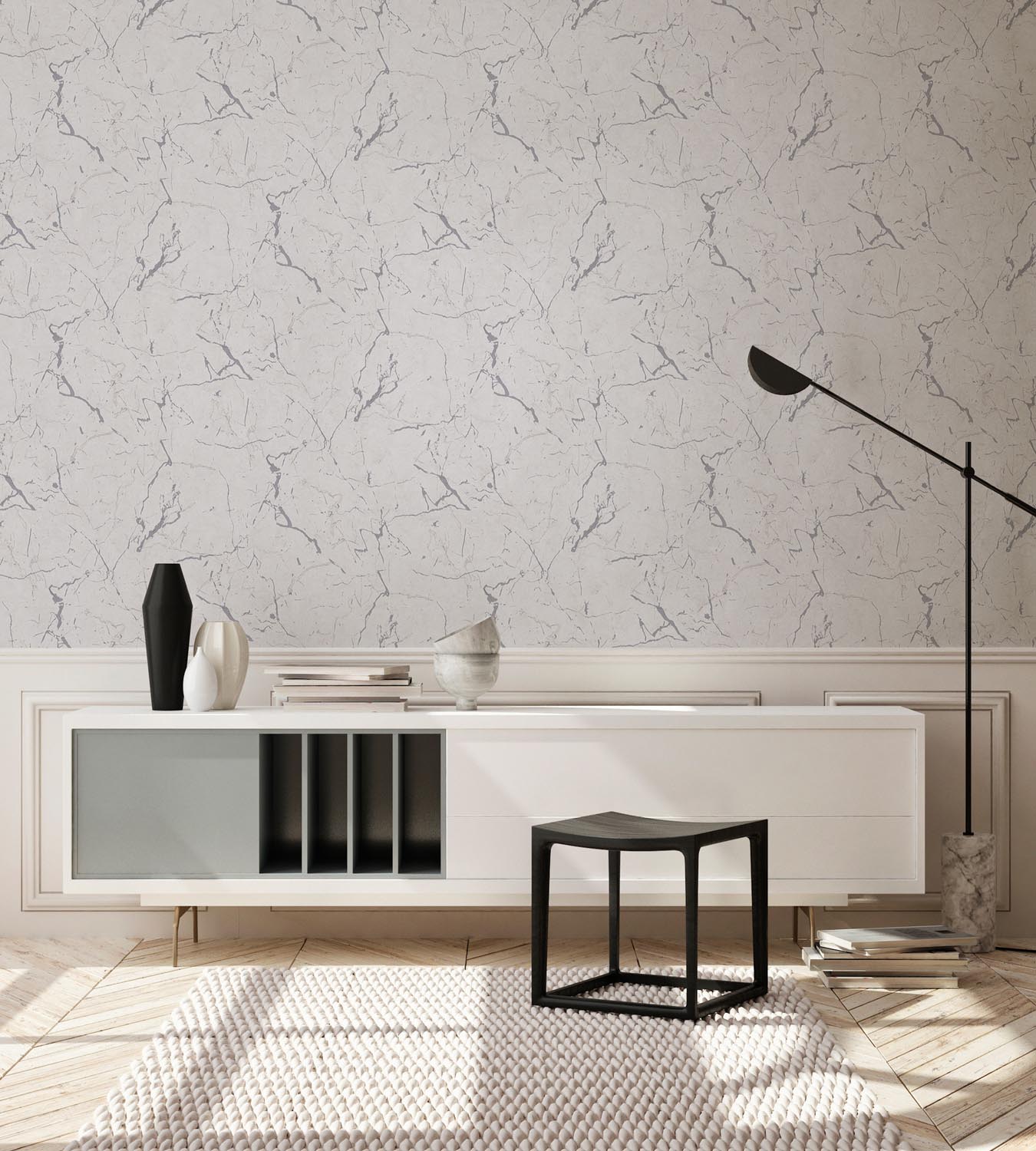 - FARBE DER TAPETE: Weiß, Grau