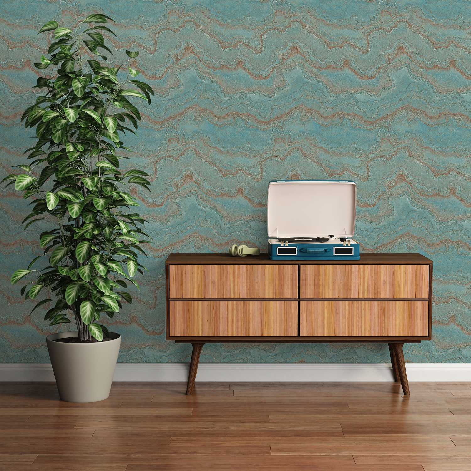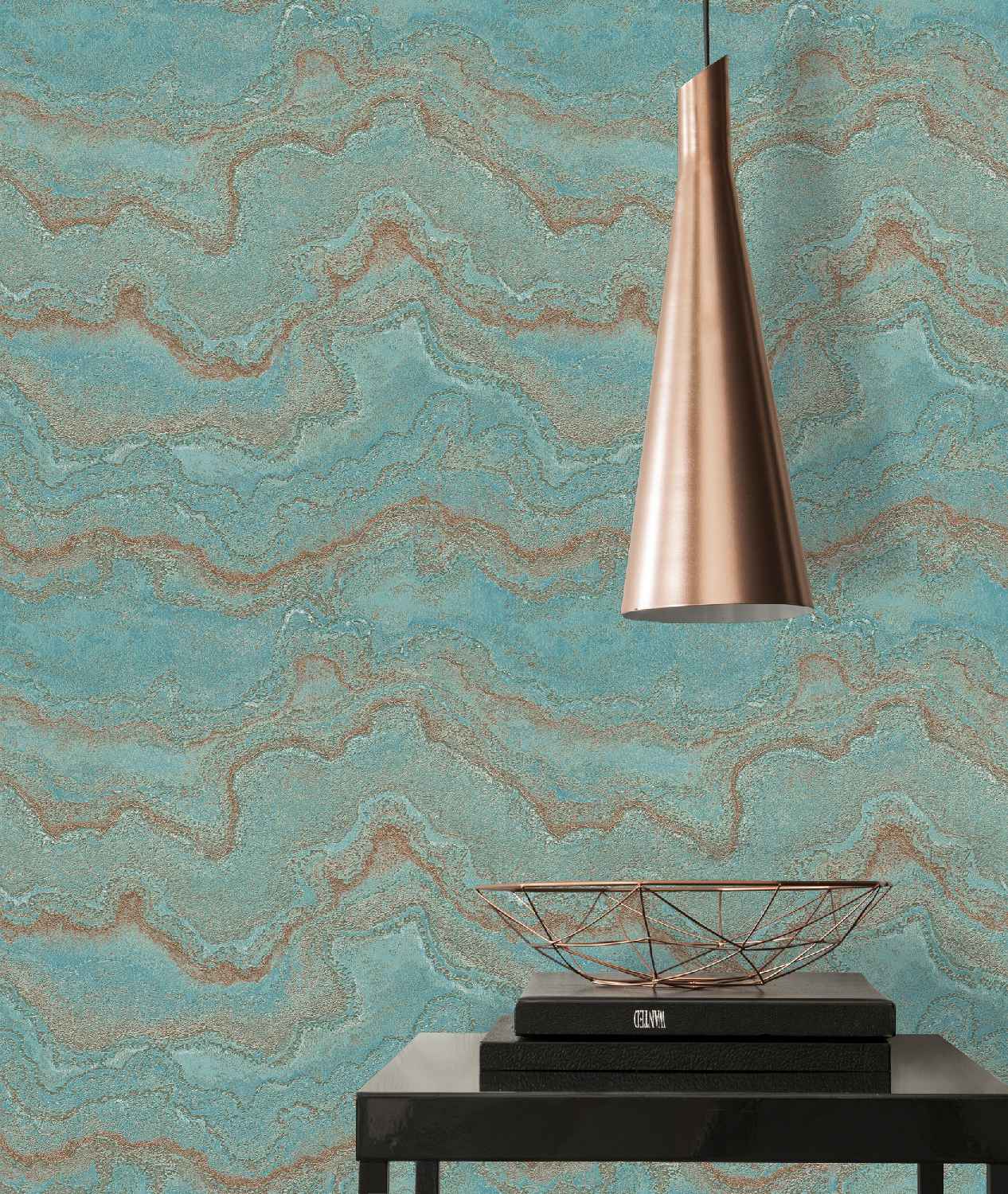 - Farbe der Tapete: Blau, Türkis, Gold