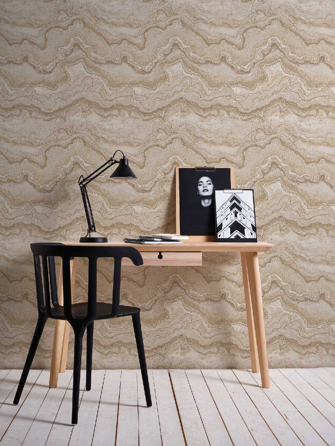 - Farbe der Tapete: Grau, Gold