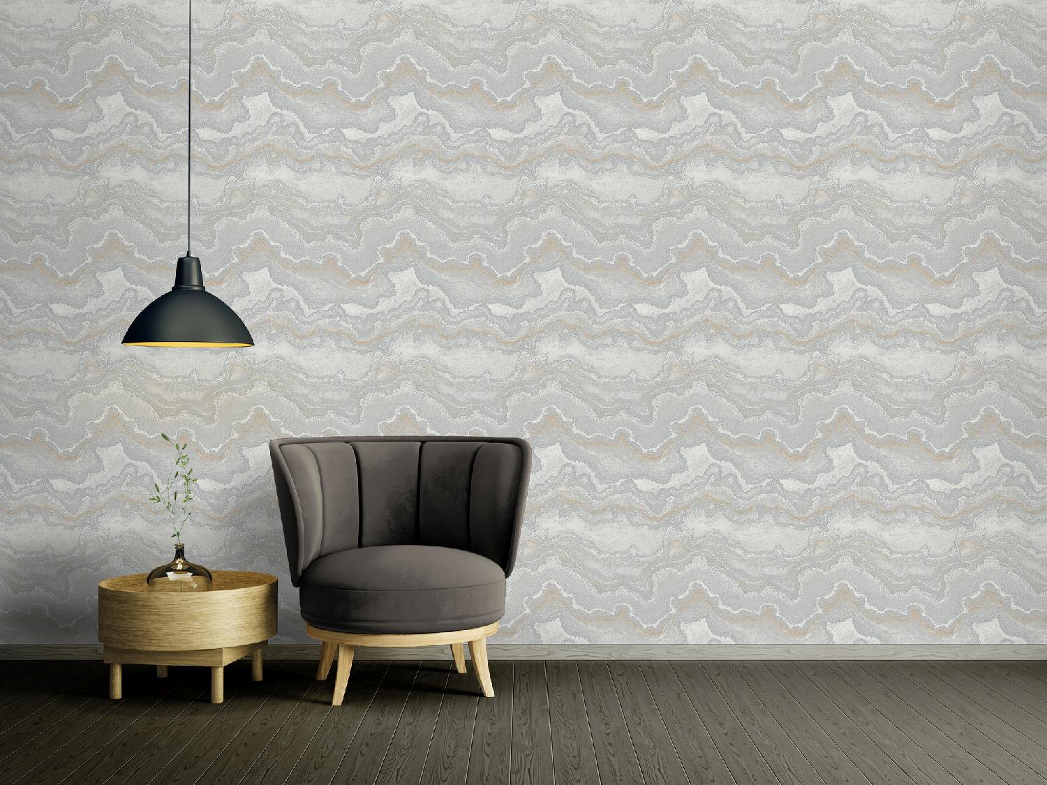 - Farbe der Tapete: Grau, Silber, Gold