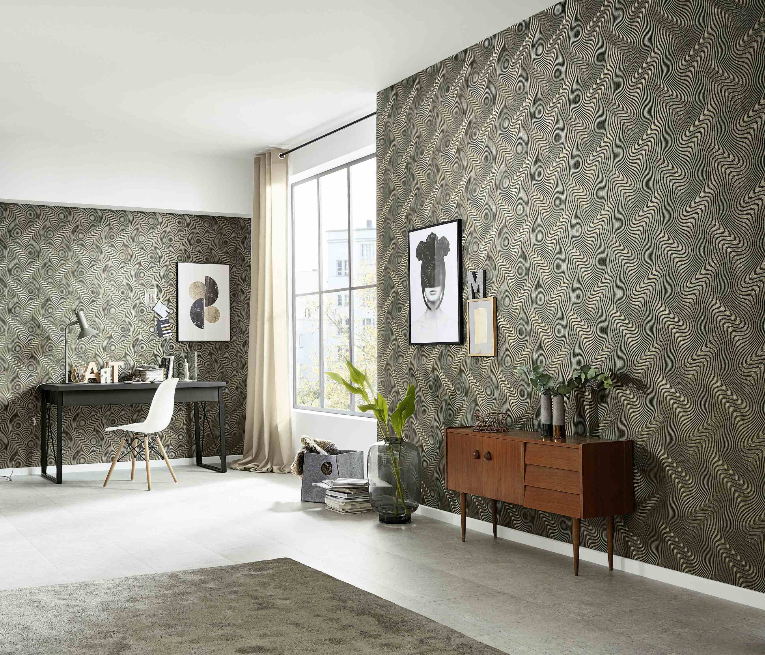 Tapetendesigns in Streifen- und Wellenoptik bringen Bewegung und Dynamik in Deine Räume und sorgen für eine lebendige Atmosphäre. Mit einer umfangreichen Auswahl an Farben und Formen, von feinen Linien bis zu geschwungenen Wellen, ist für jeden Einrichtungsstil etwas dabei. Ob dezente, harmonische Streifen für ein ausgewogenes Raumgefühl oder kraftvolle, wellige Muster für eine markante visuelle Wirkung - jedes Design kann ideal mit Uni-Tapeten kombiniert werden, um ein interessantes und anziehendes Interieur zu schaffen.