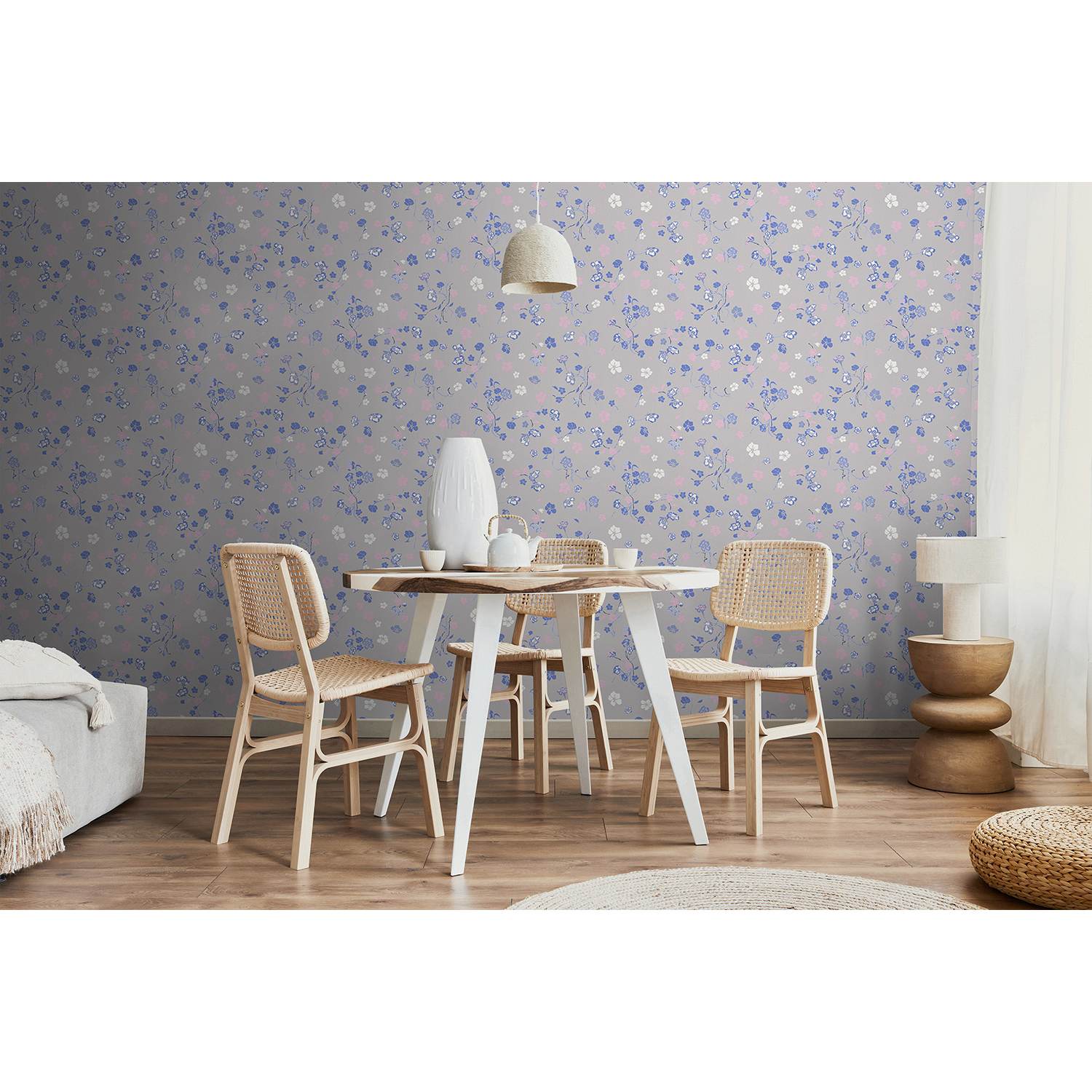 - Farbe der Tapete: Grau, Blau, Rosa, Weiß