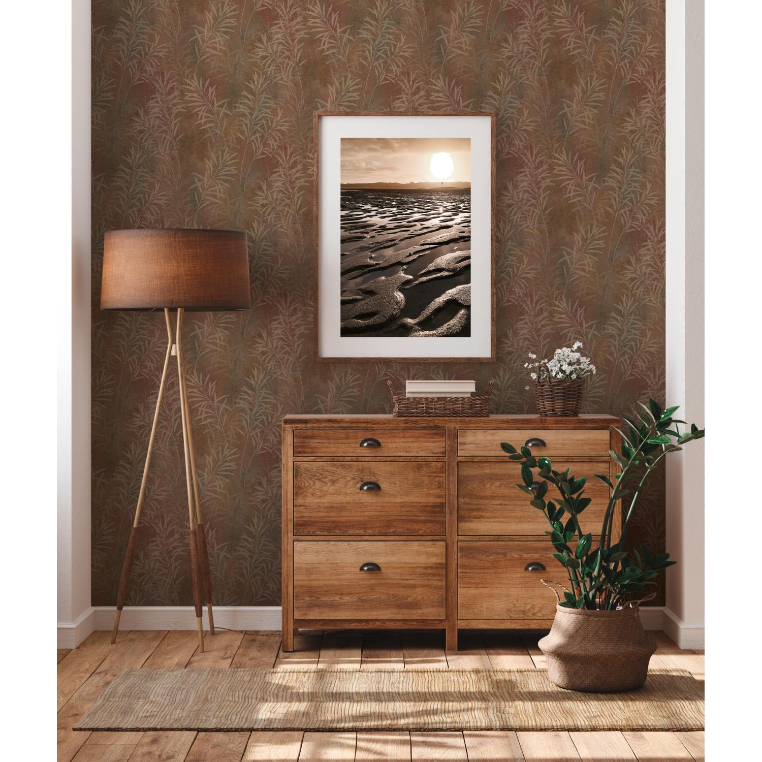 - Farbe der Tapete: Braun, Beige, Metallic