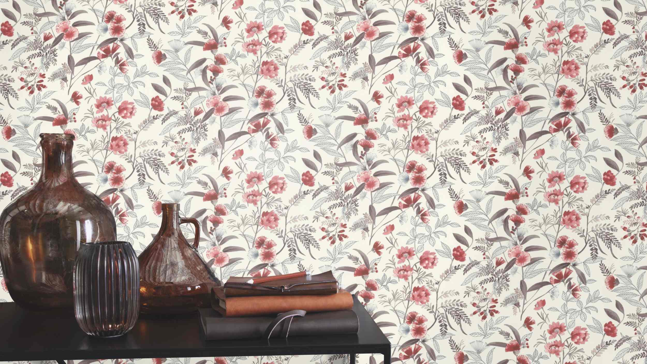 Rasch Vliestapete Symphony 869118 | 0.53 x 10.05 m | Botanical Dschungel Weiß Rot