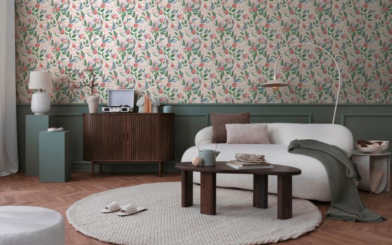 Petal Poetry, Still Bloom und Golden Fern liefern organische Ruhe, die ideal für Schlafzimmer und Essbereiche, in hellen Naturtönen bis hin zu gedeckten Grüntönen sind.