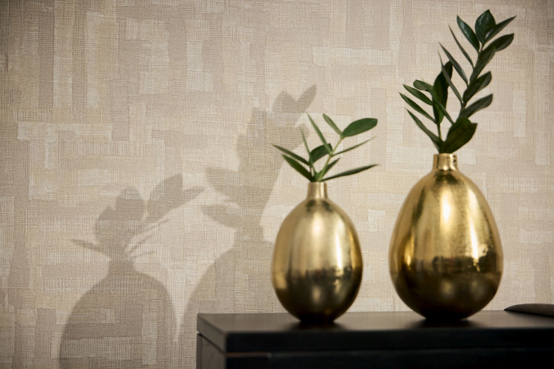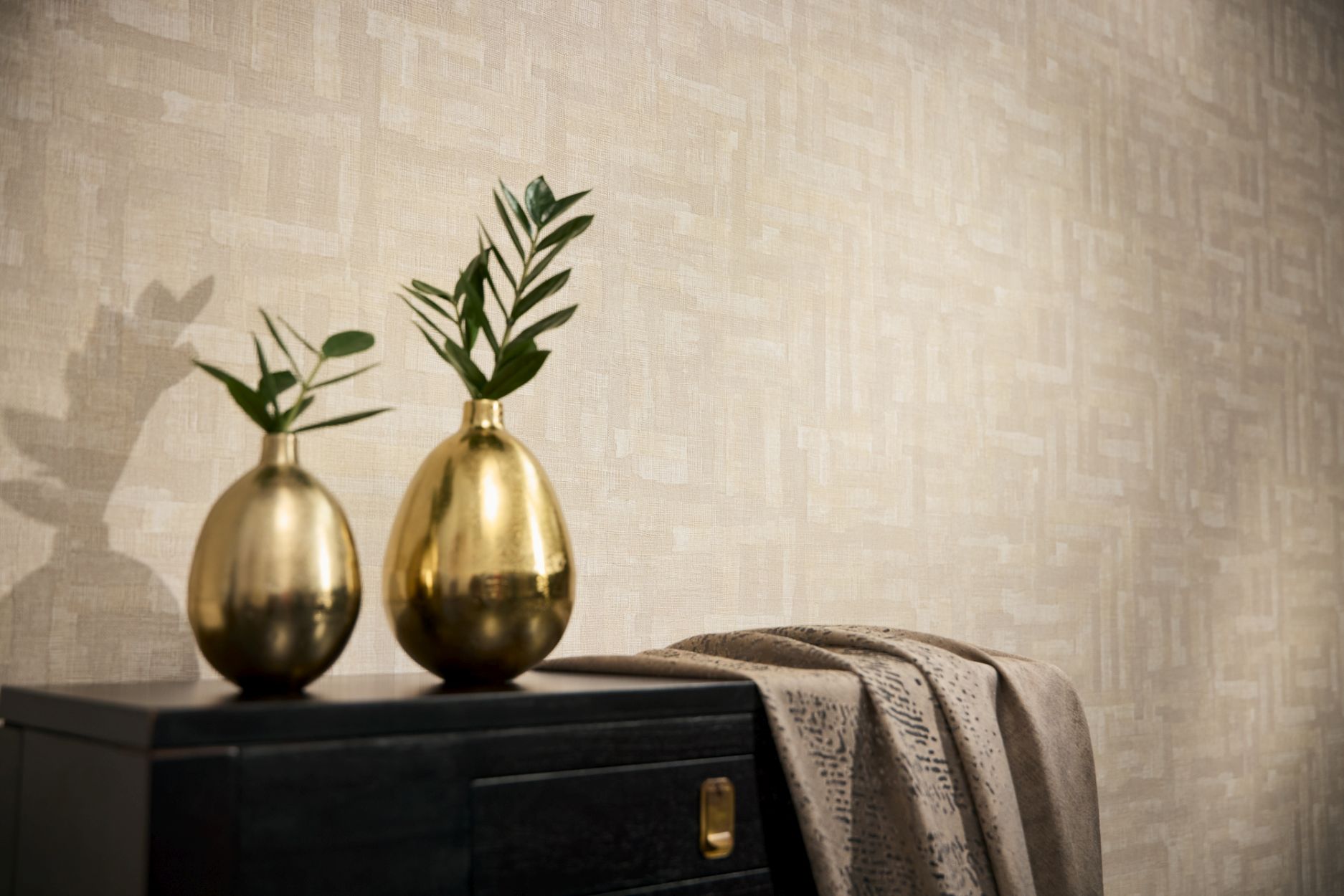 FARBE: Die Vliestapete überzeugt mit geschmackvollen Akzenten in einem harmonischen Beige